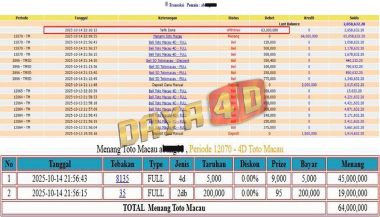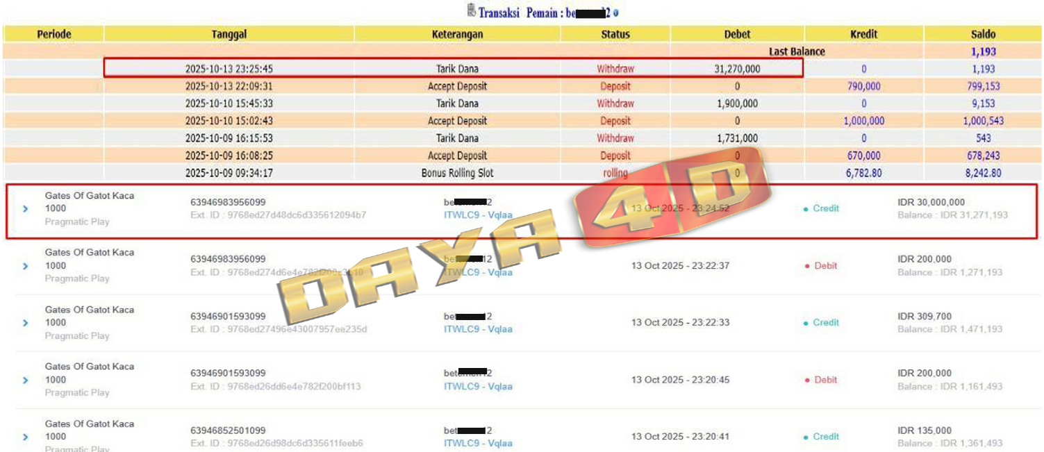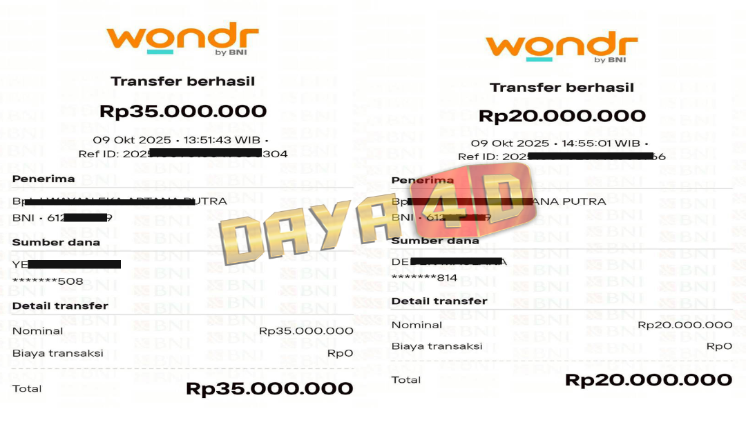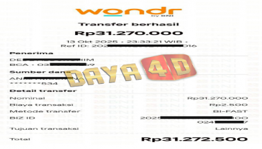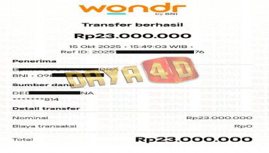 BUKTI TRANSFER JACKPOT DAYA4D