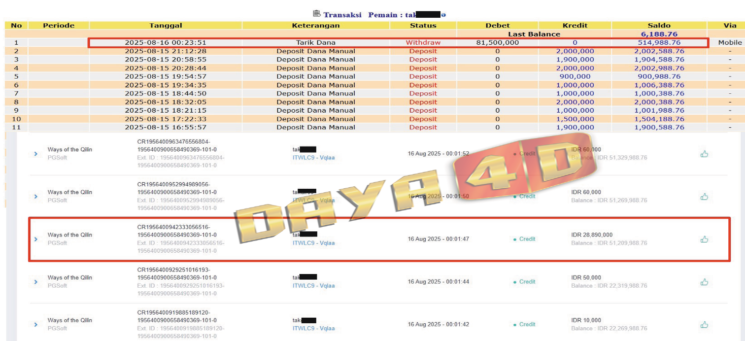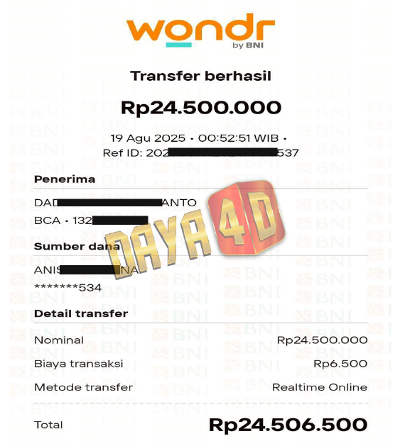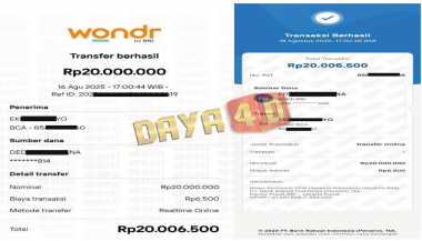 Selamat datang di situs resmi bukti transfer jacktpo DAYA4D. Ini adalah sebagai salah satu bukti kami merupakan bandar togel terpercaya maka kami akan selalu mengupload setiap bukti transaksi transfer kemenangan para member kami melalui situs ini.