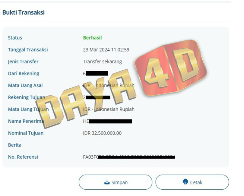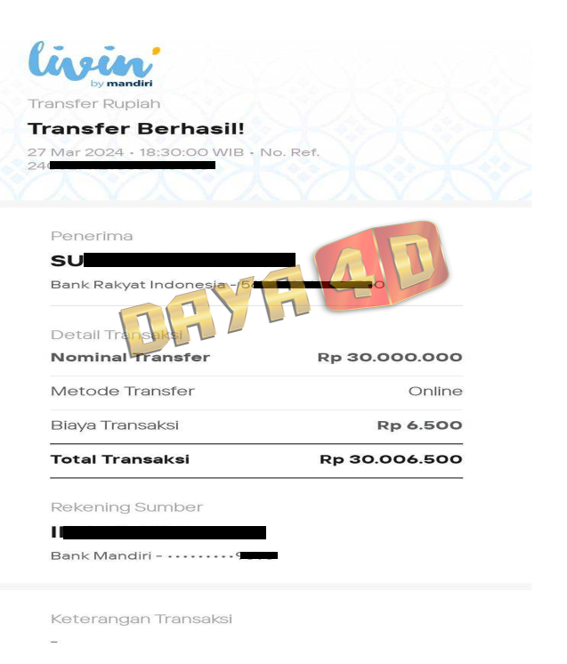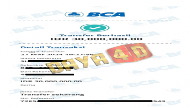 Selamat datang di situs resmi bukti transfer jacktpo DAYA4D. Ini adalah sebagai salah satu bukti kami merupakan bandar togel terpercaya maka kami akan selalu mengupload setiap bukti transaksi transfer kemenangan para member kami melalui situs ini.