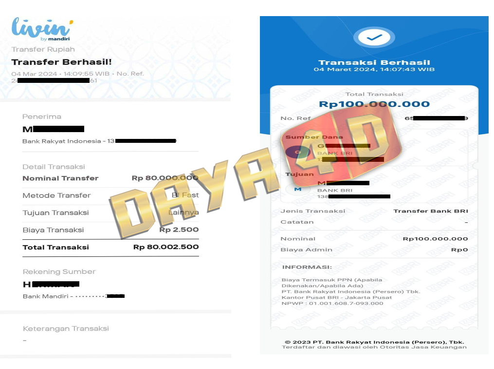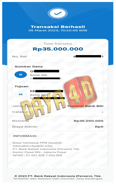 BUKTI TRANSFER JACKPOT DAYA4D