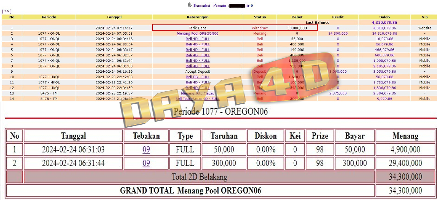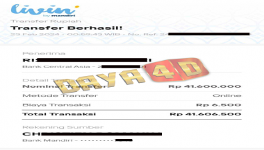 Selamat datang di situs resmi bukti transfer jacktpo DAYA4D. Ini adalah sebagai salah satu bukti kami merupakan bandar togel terpercaya maka kami akan selalu mengupload setiap bukti transaksi transfer kemenangan para member kami melalui situs ini.