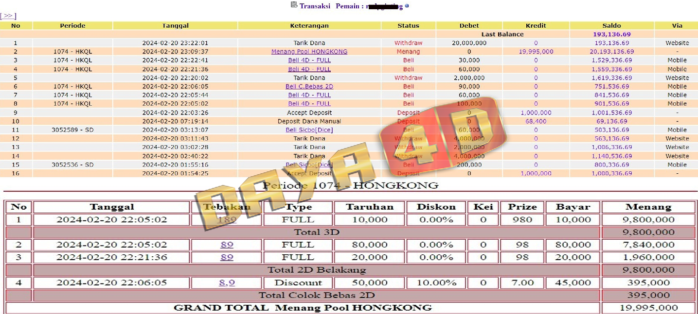 Selamat datang di situs resmi bukti transfer jacktpo DAYA4D. Ini adalah sebagai salah satu bukti kami merupakan bandar togel terpercaya maka kami akan selalu mengupload setiap bukti transaksi transfer kemenangan para member kami melalui situs ini.