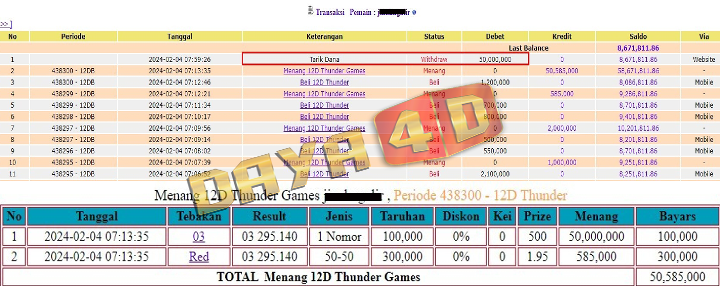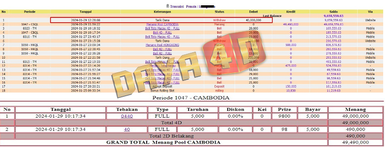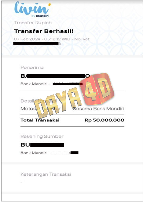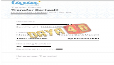 Selamat datang di situs resmi bukti transfer jacktpo DAYA4D. Ini adalah sebagai salah satu bukti kami merupakan bandar togel terpercaya maka kami akan selalu mengupload setiap bukti transaksi transfer kemenangan para member kami melalui situs ini.