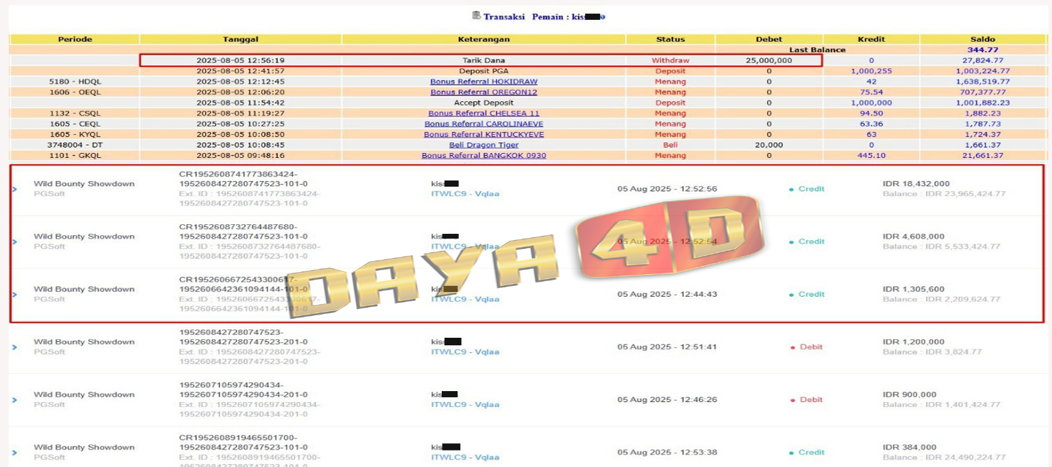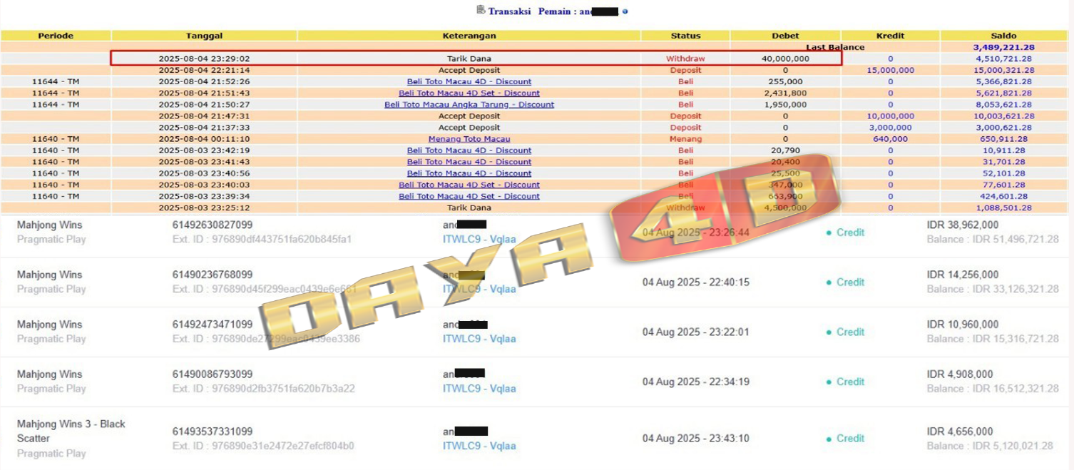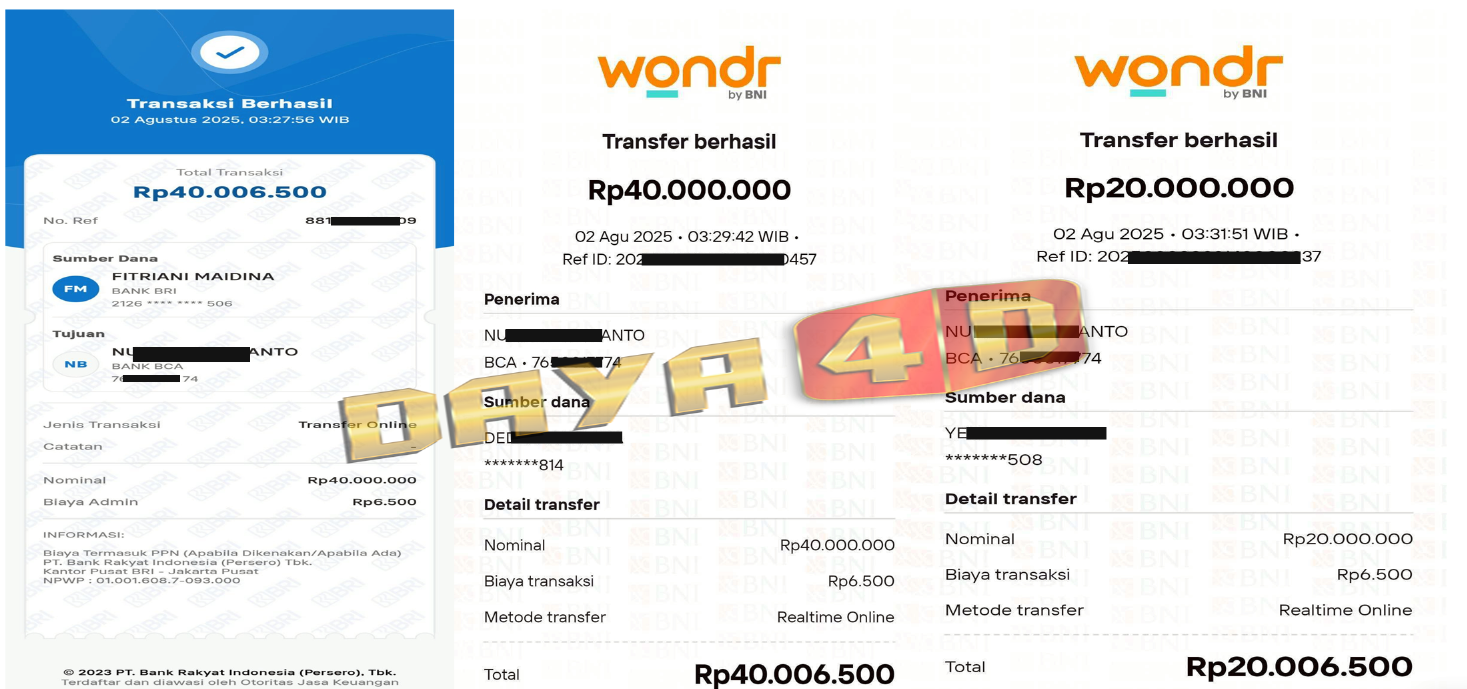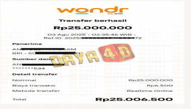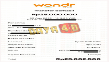 Selamat datang di situs resmi bukti transfer jacktpo DAYA4D. Ini adalah sebagai salah satu bukti kami merupakan bandar togel terpercaya maka kami akan selalu mengupload setiap bukti transaksi transfer kemenangan para member kami melalui situs ini.