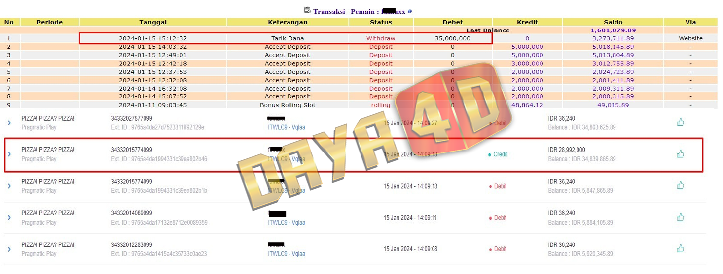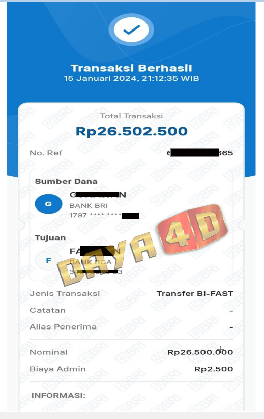 Selamat datang di situs resmi bukti transfer jacktpo DAYA4D. Ini adalah sebagai salah satu bukti kami merupakan bandar togel terpercaya maka kami akan selalu mengupload setiap bukti transaksi transfer kemenangan para member kami melalui situs ini.