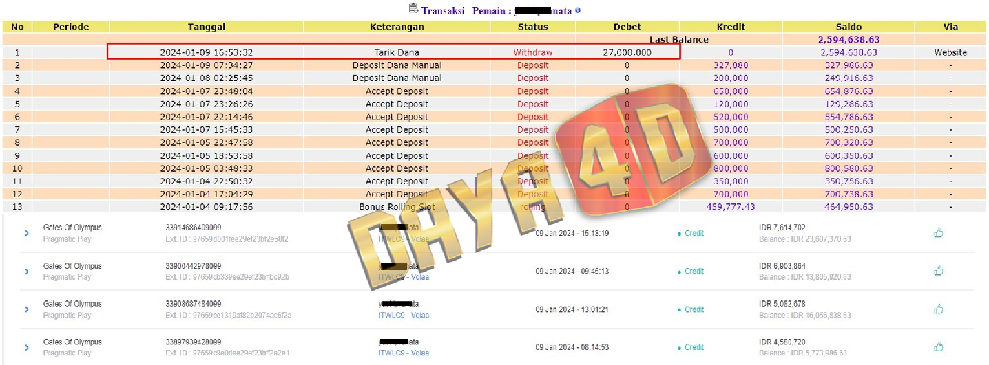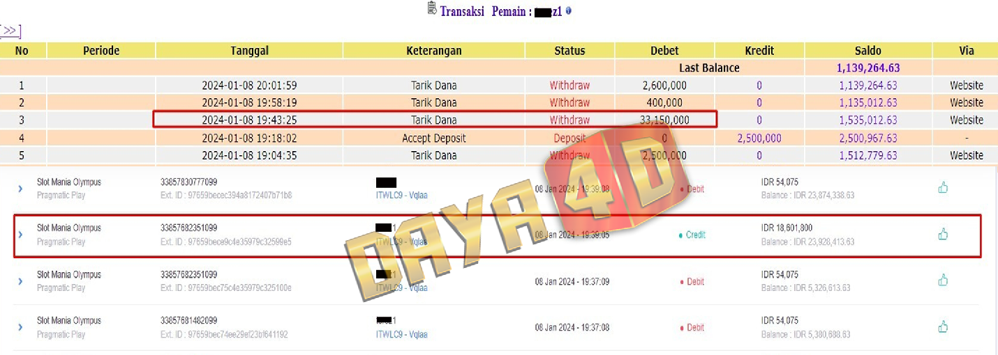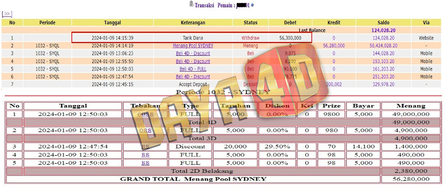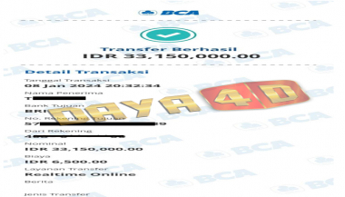 Selamat datang di situs resmi bukti transfer jacktpo DAYA4D. Ini adalah sebagai salah satu bukti kami merupakan bandar togel terpercaya maka kami akan selalu mengupload setiap bukti transaksi transfer kemenangan para member kami melalui situs ini.