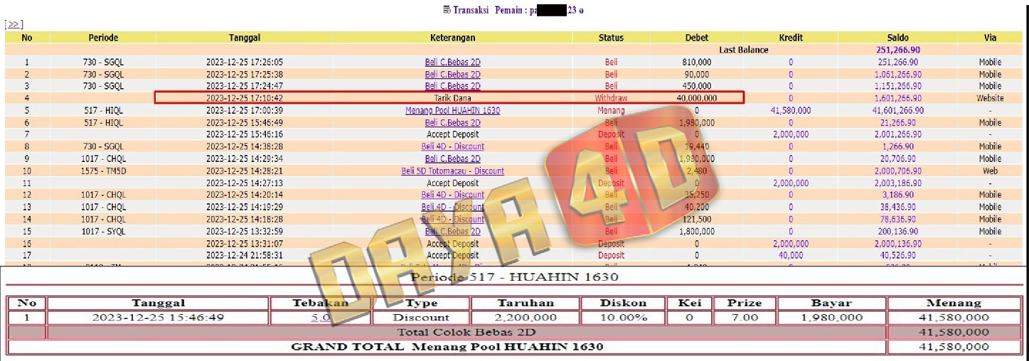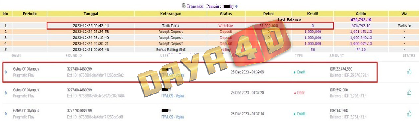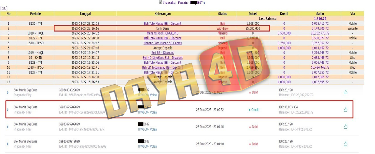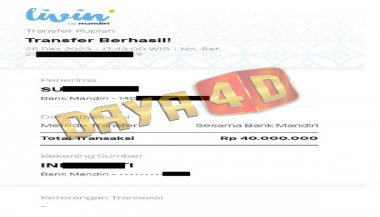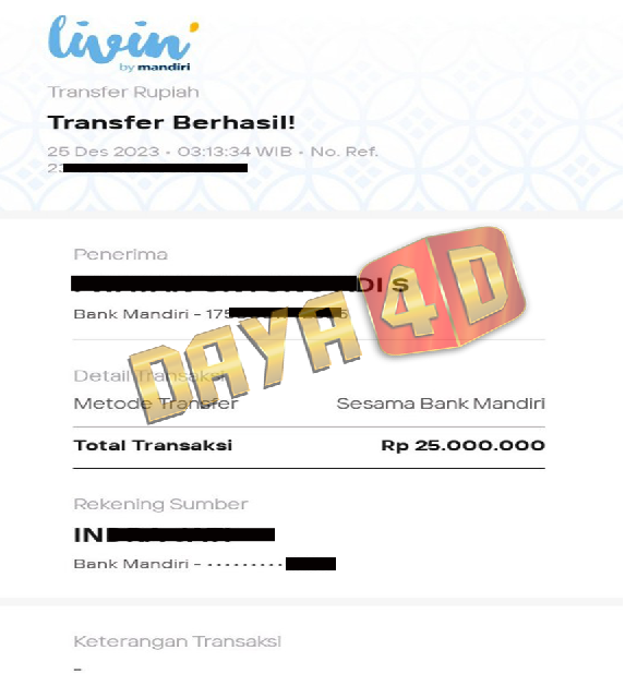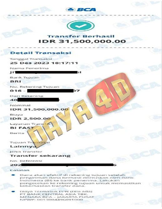 Selamat datang di situs resmi bukti transfer jacktpo DAYA4D. Ini adalah sebagai salah satu bukti kami merupakan bandar togel terpercaya maka kami akan selalu mengupload setiap bukti transaksi transfer kemenangan para member kami melalui situs ini.