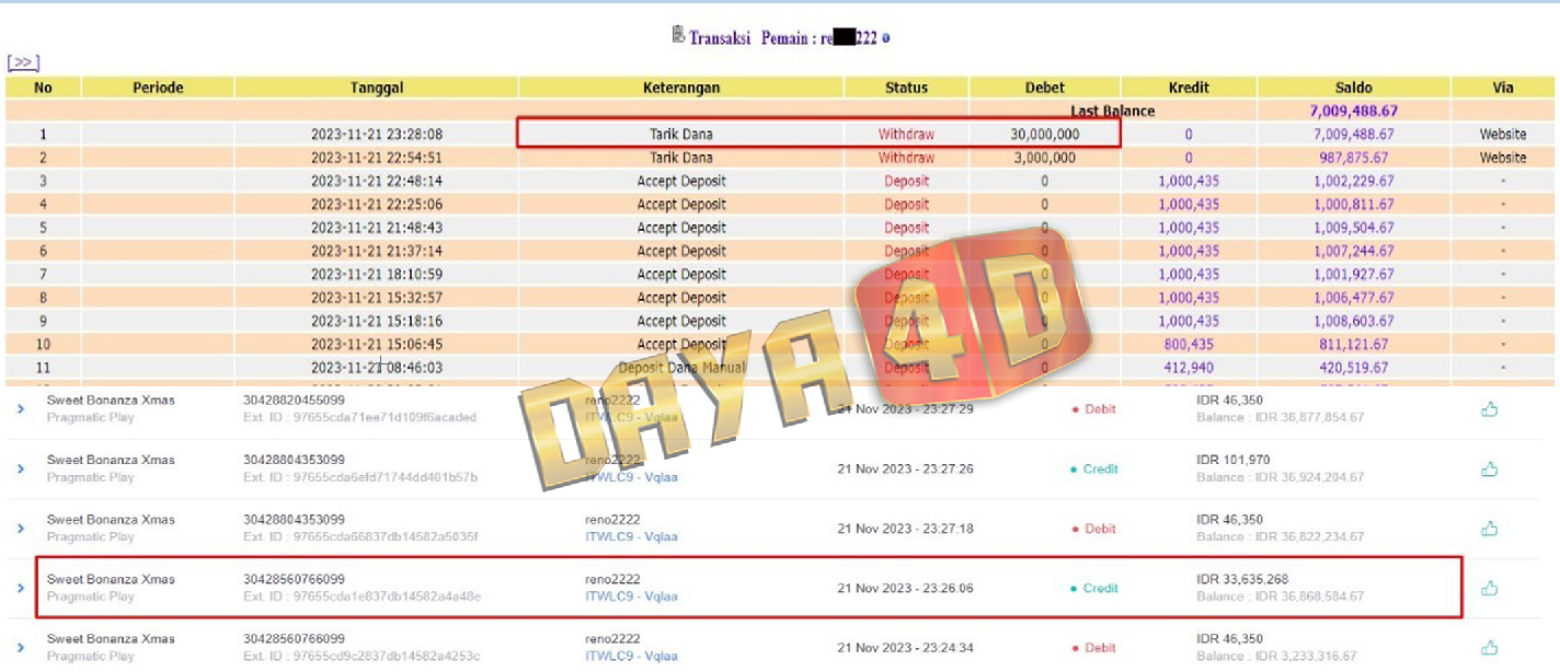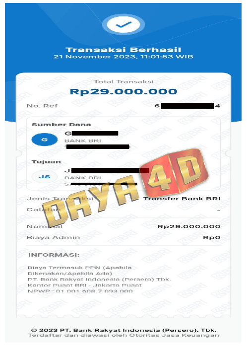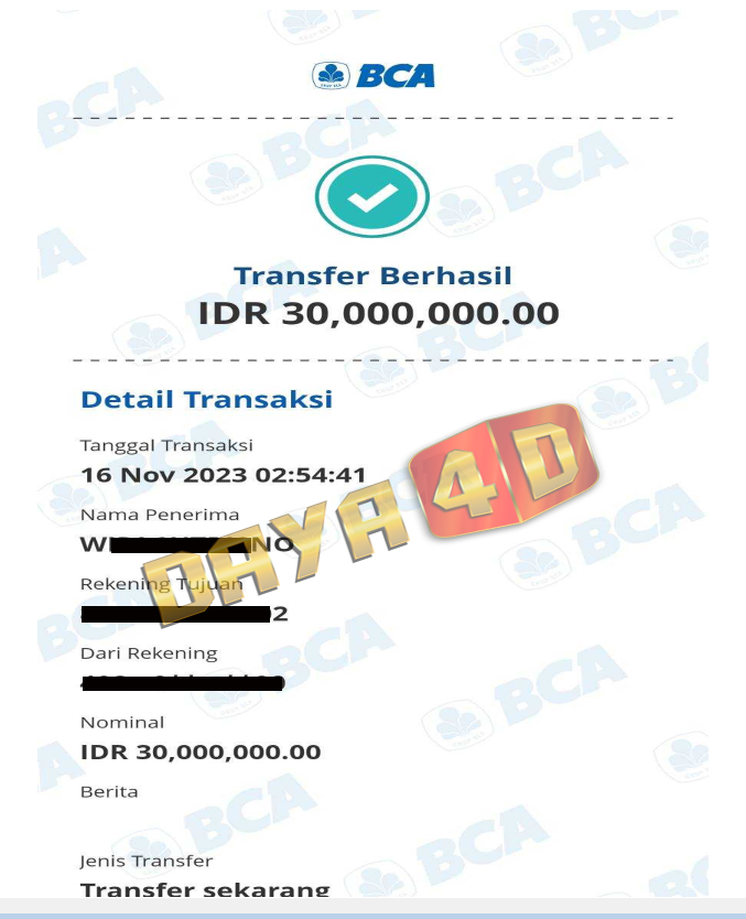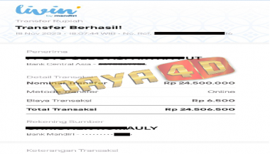 Selamat datang di situs resmi bukti transfer jacktpo DAYA4D. Ini adalah sebagai salah satu bukti kami merupakan bandar togel terpercaya maka kami akan selalu mengupload setiap bukti transaksi transfer kemenangan para member kami melalui situs ini.