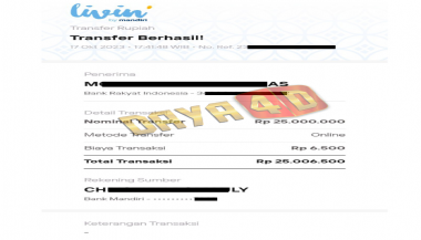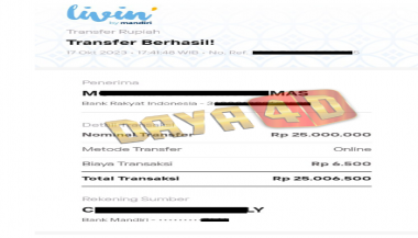 Selamat datang di situs resmi bukti transfer jacktpo DAYA4D. Ini adalah sebagai salah satu bukti kami merupakan bandar togel terpercaya maka kami akan selalu mengupload setiap bukti transaksi transfer kemenangan para member kami melalui situs ini.
