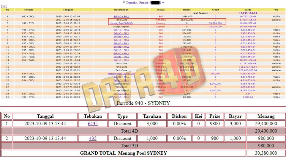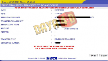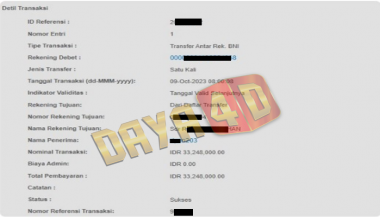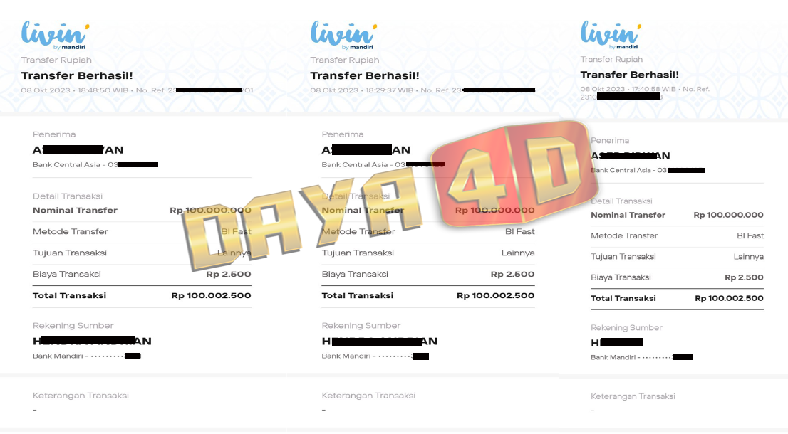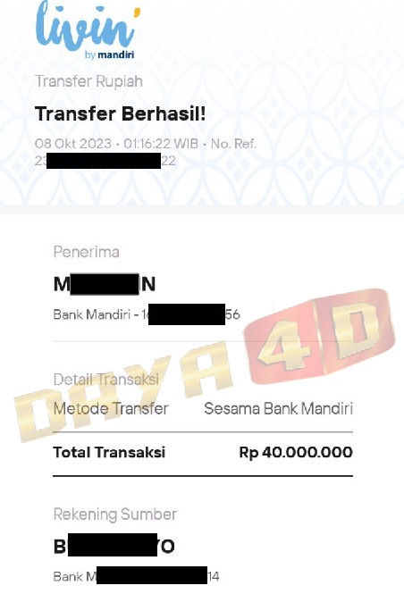 Selamat datang di situs resmi bukti transfer jacktpo DAYA4D. Ini adalah sebagai salah satu bukti kami merupakan bandar togel terpercaya maka kami akan selalu mengupload setiap bukti transaksi transfer kemenangan para member kami melalui situs ini.