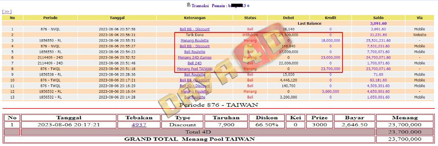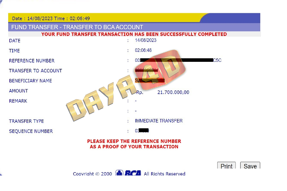 Selamat datang di situs resmi bukti transfer jacktpo DAYA4D. Ini adalah sebagai salah satu bukti kami merupakan bandar togel terpercaya maka kami akan selalu mengupload setiap bukti transaksi transfer kemenangan para member kami melalui situs ini.