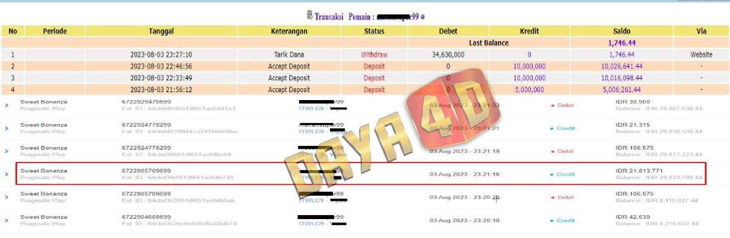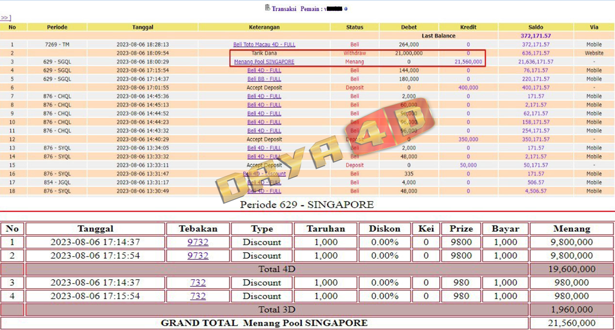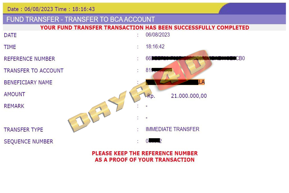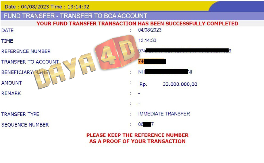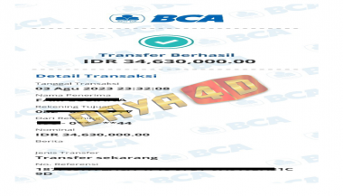 Selamat datang di situs resmi bukti transfer jacktpo DAYA4D. Ini adalah sebagai salah satu bukti kami merupakan bandar togel terpercaya maka kami akan selalu mengupload setiap bukti transaksi transfer kemenangan para member kami melalui situs ini.