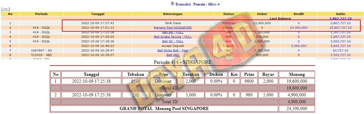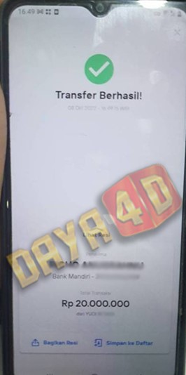 Selamat datang di situs resmi bukti transfer jacktpo DAYA4D. Ini adalah sebagai salah satu bukti kami merupakan bandar togel terpercaya maka kami akan selalu mengupload setiap bukti transaksi transfer kemenangan para member kami melalui situs ini.
