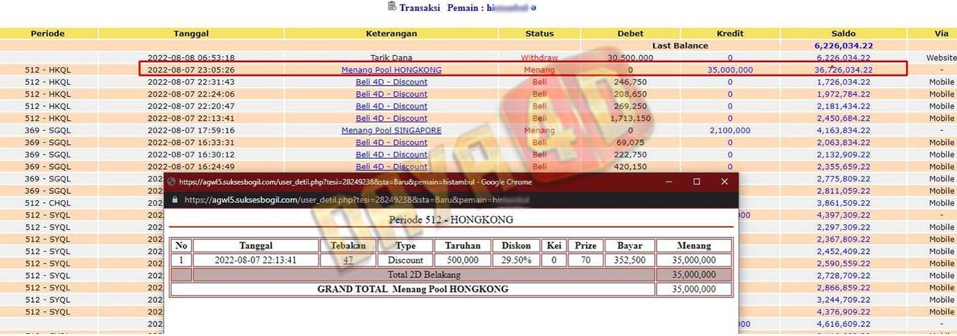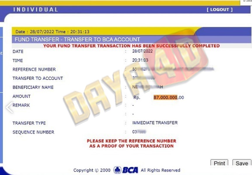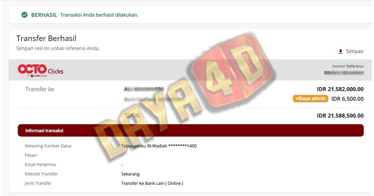 BUKTI TRANSFER JACKPOT DAYA4D