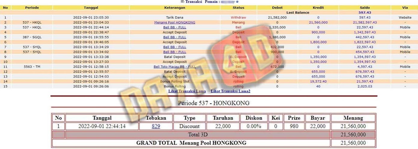 Selamat datang di situs resmi bukti transfer jacktpo DAYA4D. Ini adalah sebagai salah satu bukti kami merupakan bandar togel terpercaya maka kami akan selalu mengupload setiap bukti transaksi transfer kemenangan para member kami melalui situs ini.