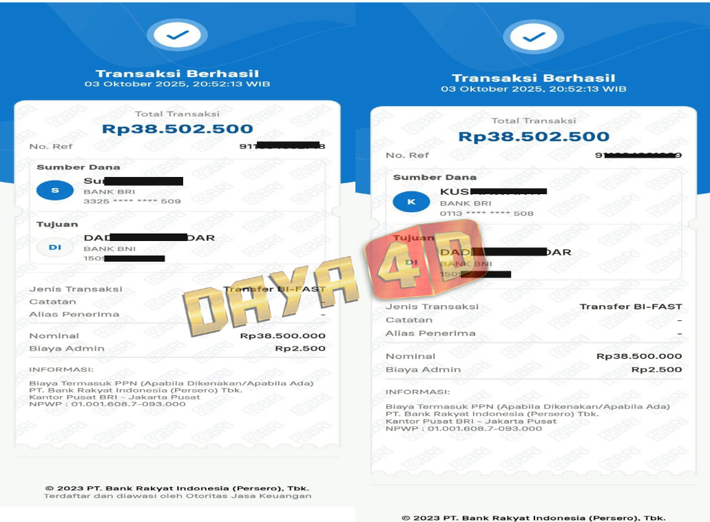 Selamat datang di situs resmi bukti transfer jacktpo DAYA4D. Ini adalah sebagai salah satu bukti kami merupakan bandar togel terpercaya maka kami akan selalu mengupload setiap bukti transaksi transfer kemenangan para member kami melalui situs ini.