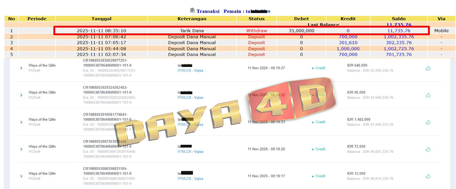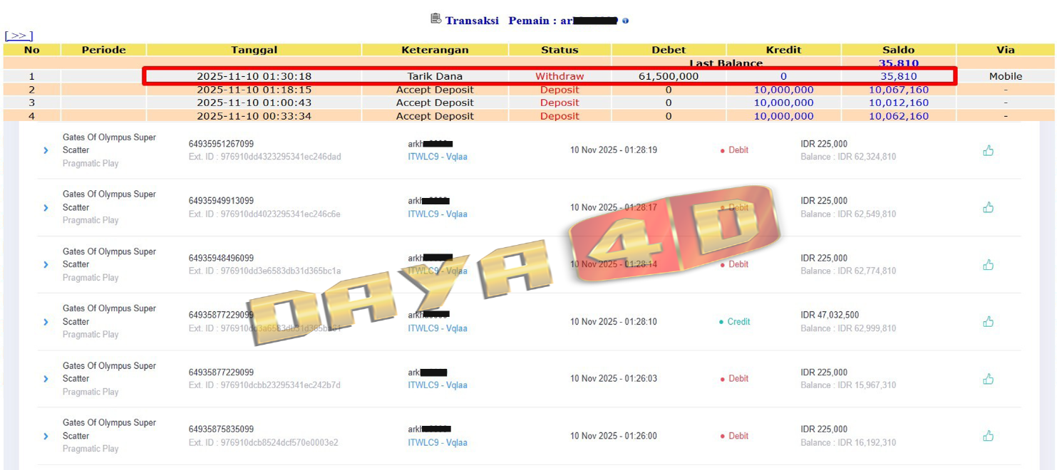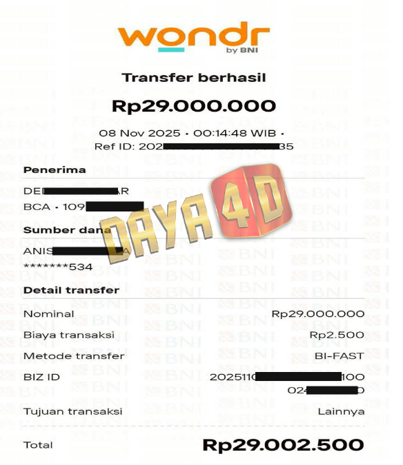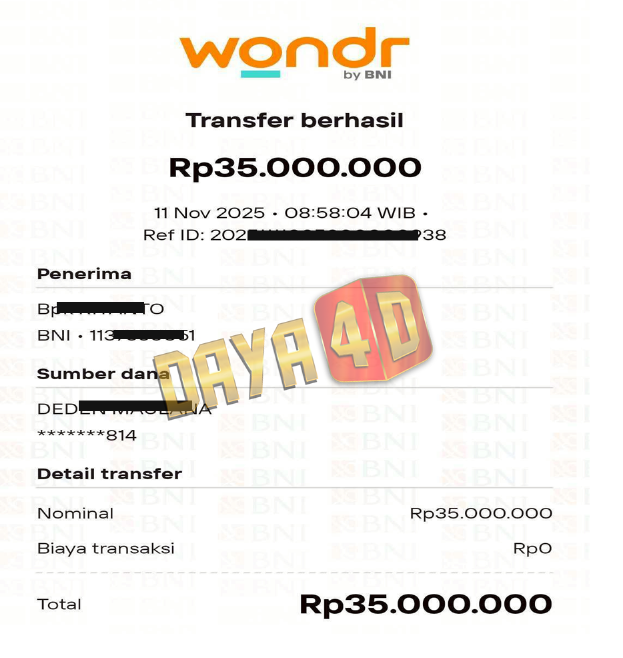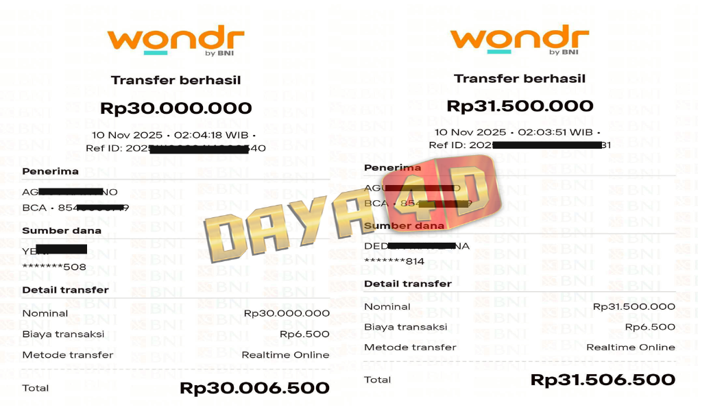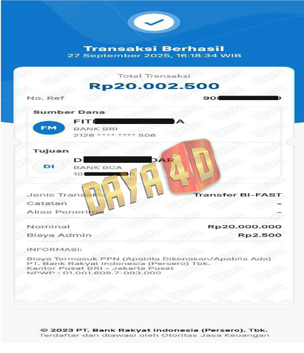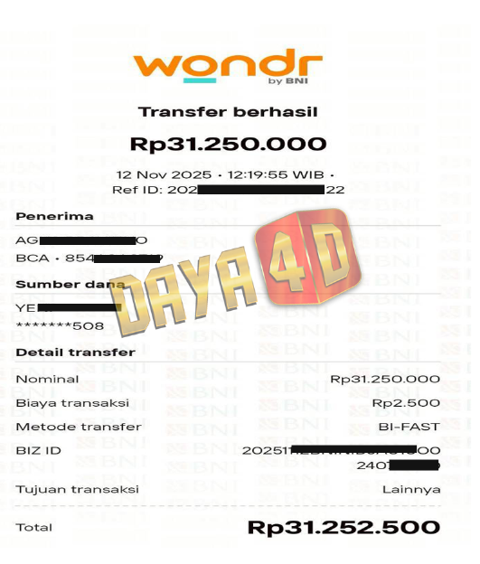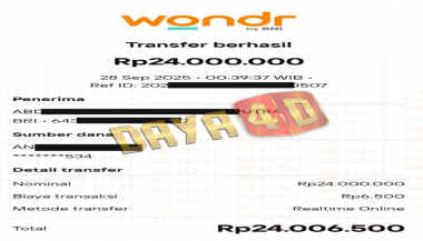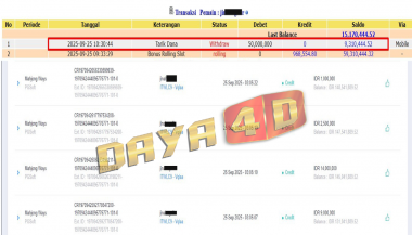 Selamat datang di situs resmi bukti transfer jacktpo DAYA4D. Ini adalah sebagai salah satu bukti kami merupakan bandar togel terpercaya maka kami akan selalu mengupload setiap bukti transaksi transfer kemenangan para member kami melalui situs ini.