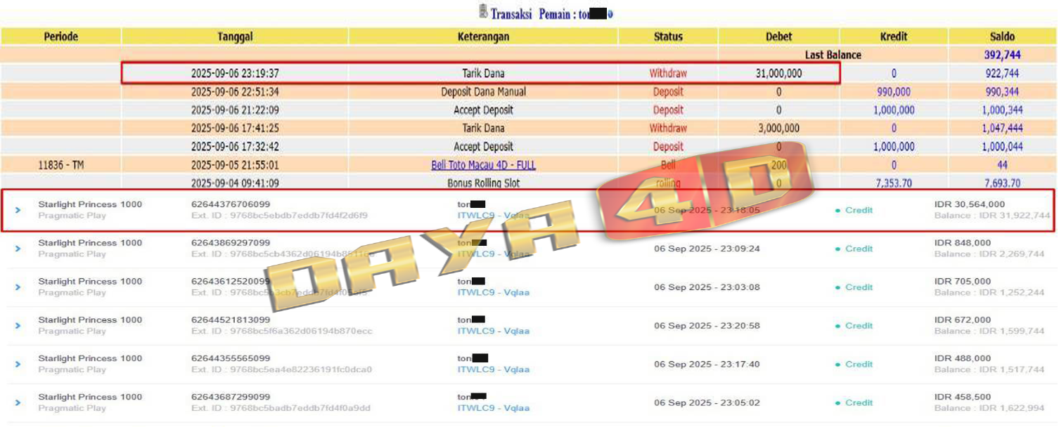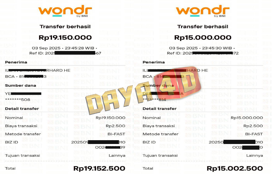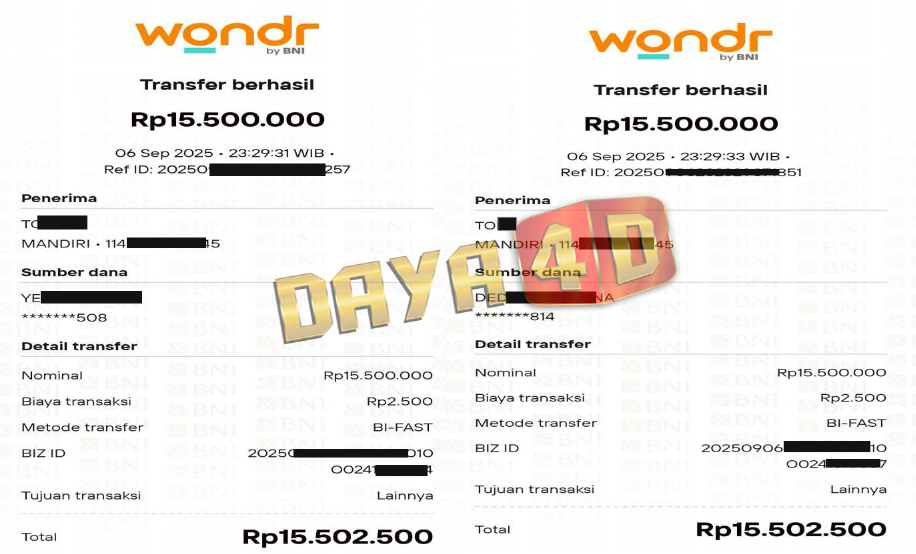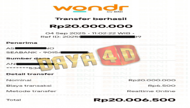 BUKTI TRANSFER JACKPOT DAYA4D