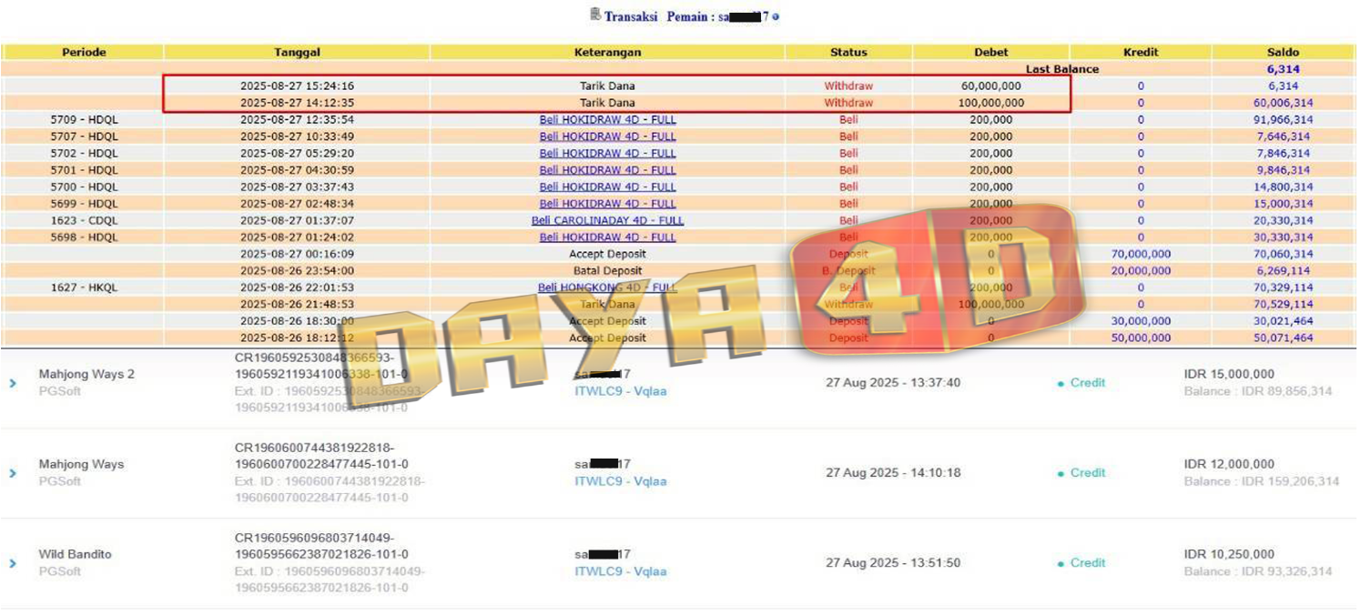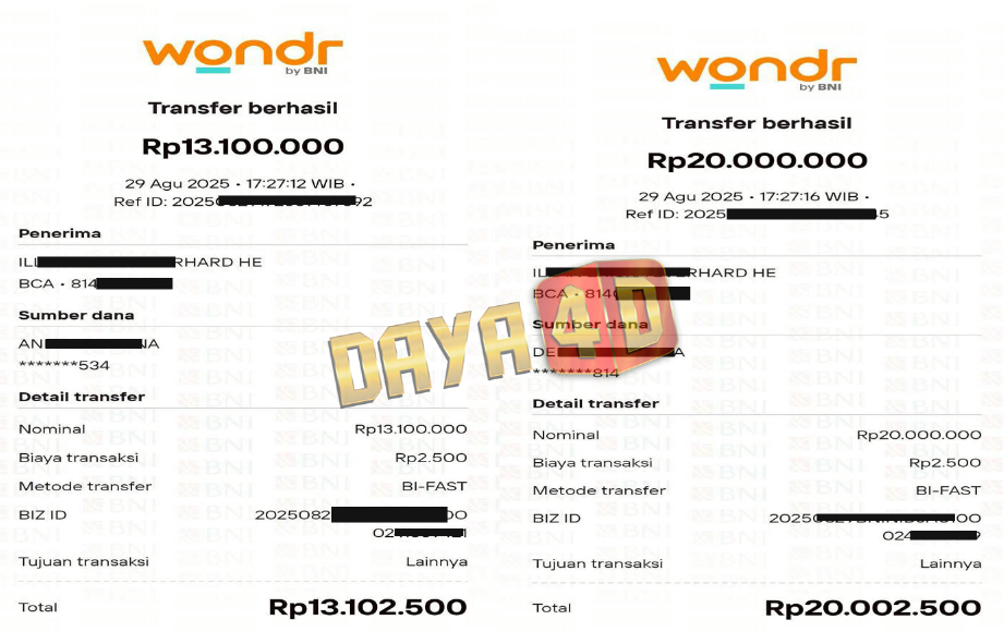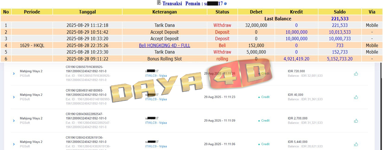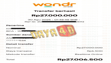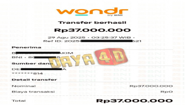 BUKTI TRANSFER JACKPOT DAYA4D