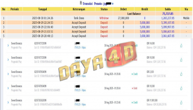 Selamat datang di situs resmi bukti transfer jacktpo DAYA4D. Ini adalah sebagai salah satu bukti kami merupakan bandar togel terpercaya maka kami akan selalu mengupload setiap bukti transaksi transfer kemenangan para member kami melalui situs ini.